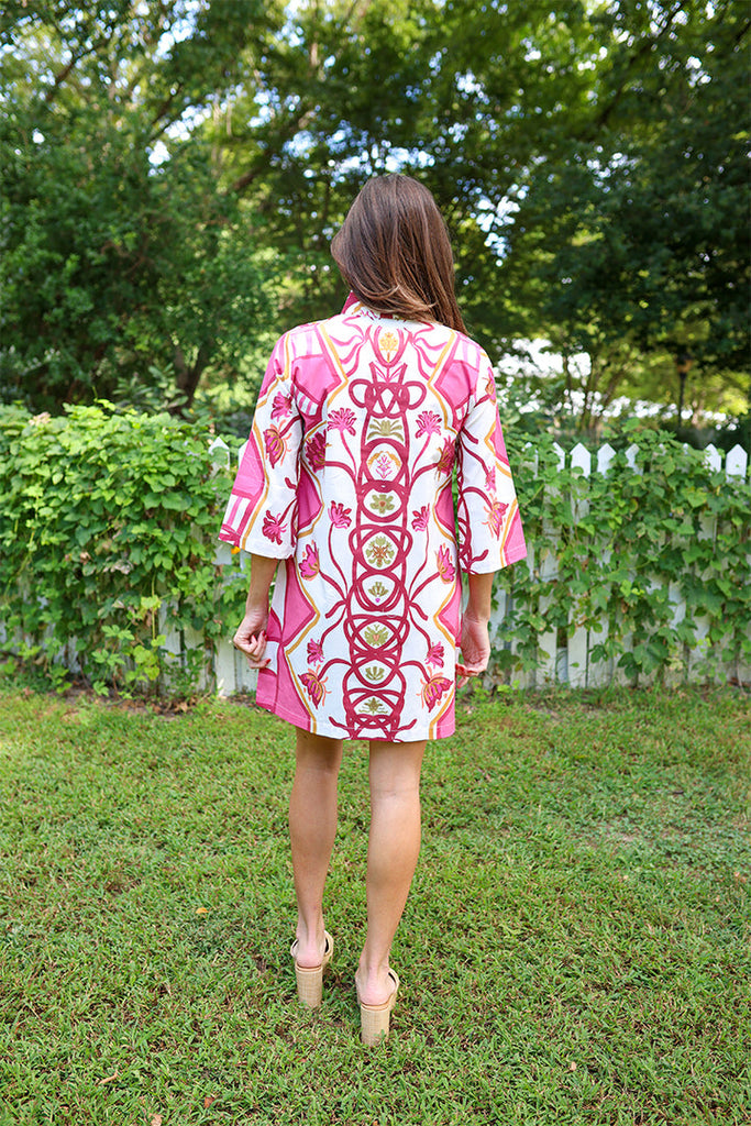 Add a little color to your wardrobe with our Raspberry Trail© Bouvier. The caftan that is made to turn heads and fab on everyone.