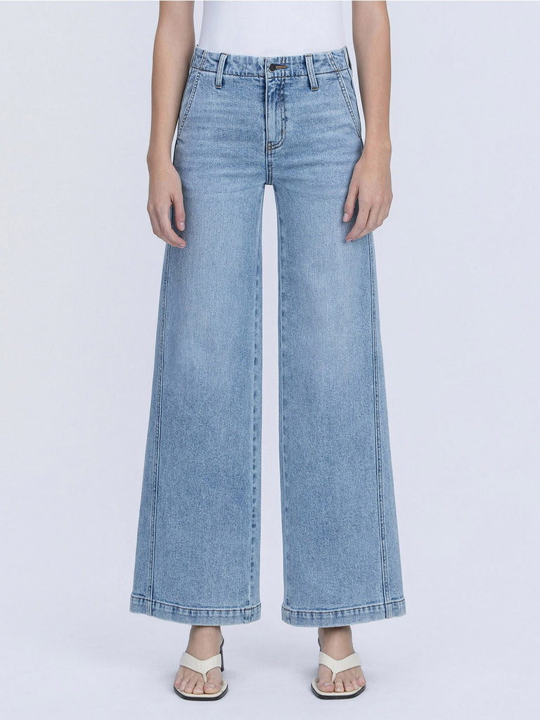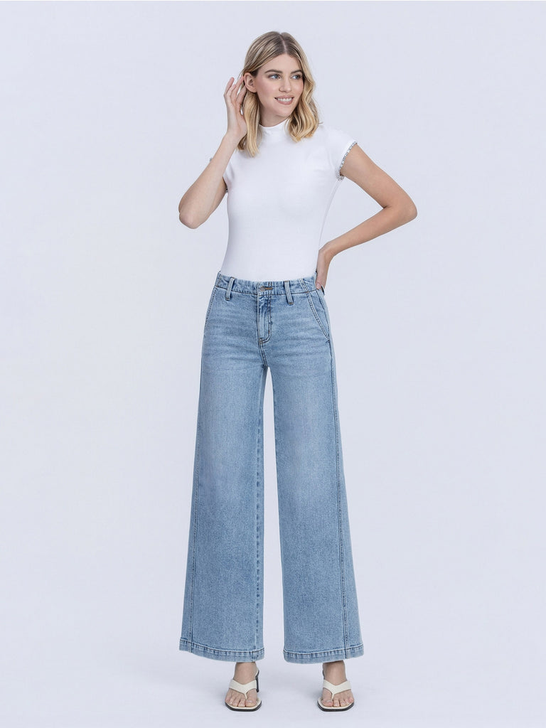 Boost your denim collection with these Self-Belief High Rise Wide Jeans, crafted from comfort stretch fabric that moves with you all day. The high rise waist provides flattering coverage while the twist wide leg silhouette creates a modern, effortless look. Finished in a medium light wash with a polished trouser hem, these full-length jeans transition seamlessly from casual weekends to dressed-up occasions. The stretch denim ensures all-day comfort without compromising on style.