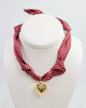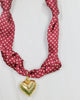 Add a playful twist to your style with the Serafina Scarf Charm Necklace in Garnet. Crafted from a silky satin-feel fabric, this 30" scarf features a charming ribbed puff heart pendant for a chic, eye-catching detail. Two stylish knots and an adjustable tie-back closure ensure a perfect fit, making it a versatile accessory to brighten any outfit.