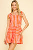 This playful mini dress in a vibrant orange coral features a squared neckline and self-tie straps for a customizable fit. The tiered detail adds flirty volume, while the button at the back ensures easy wear. Perfect for sunny days and fun nights, it’s designed to bring a cheerful pop of color to your wardrobe.