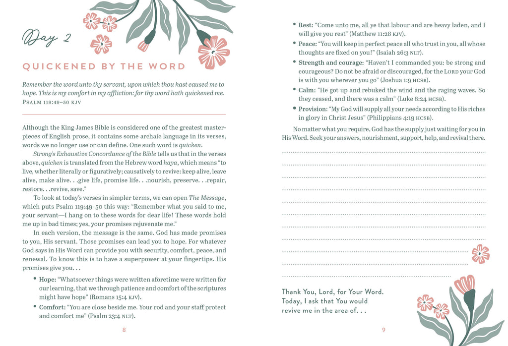 The 100-Day Devotional Journal for Women offers relatable, real-life wisdom and inspiration for everyday living. You'll encounter page after page of biblical truths you can apply to every area of your life. With topics like Family, Friendship, Culture, Stress, Self-Image, Priorities, Emotions, and more, these devotions will encourage you to grow in your faith and spend regular time in the heavenly Father's presence. Each devotional reading is complemented by a brief scripture selection and short prayer-starter. The 100-Day Devotional Journal for Women is the perfect place for you to spend your next hundred days!