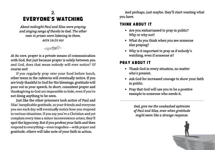 The 100-Day Prayer Guide for Teen Guys offers relatable, real-life wisdom and inspiration for prayer. You’ll encounter page after page of biblical truths you can apply to your own quiet time with God.