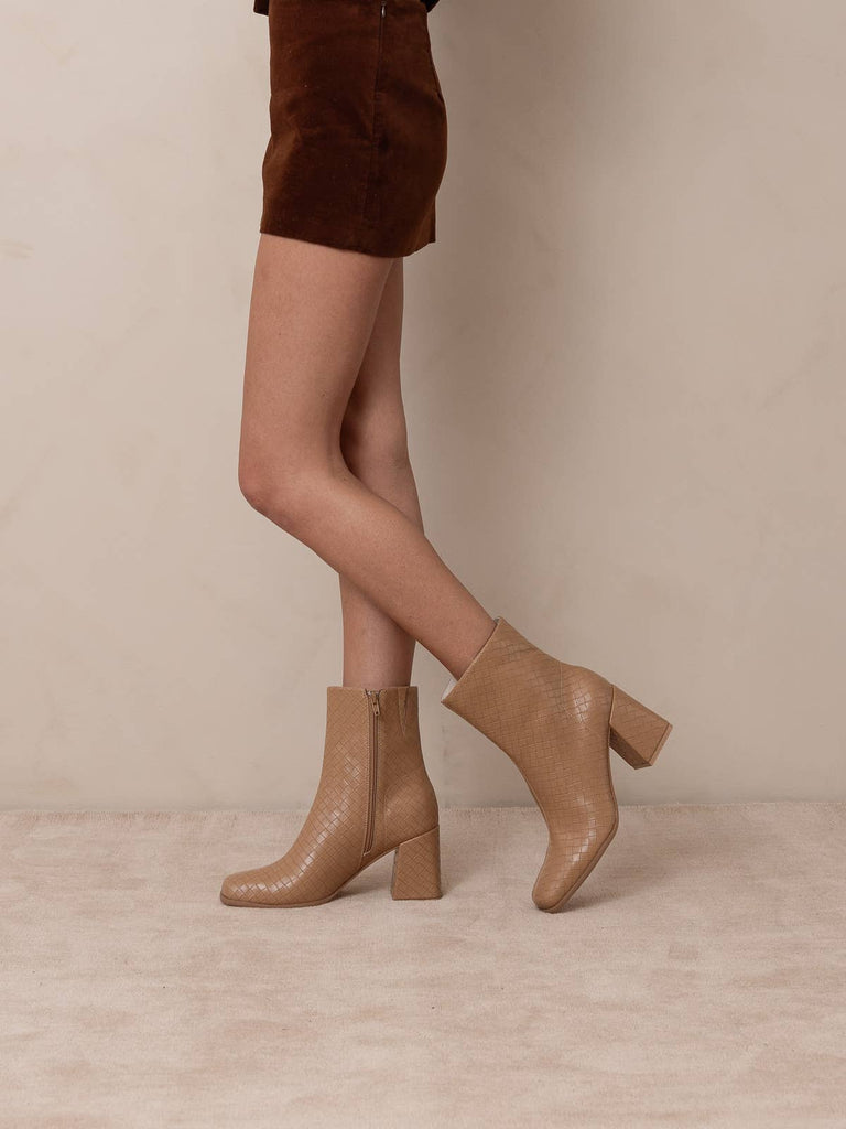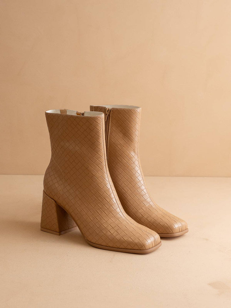 Step into playful charm with The Demi Camel Woven Ankle Boot. Its woven texture and structured square toe add a stylish twist, while the block heel keeps you comfortably striding all day. The side zip ensures easy wear, and the sculpted ankle fit makes it perfect for pairing with your favorite denim, trousers, or flowy midi skirts. Crafted from carefully chosen materials, these boots bring everyday polish with a fun, fashionable edge.