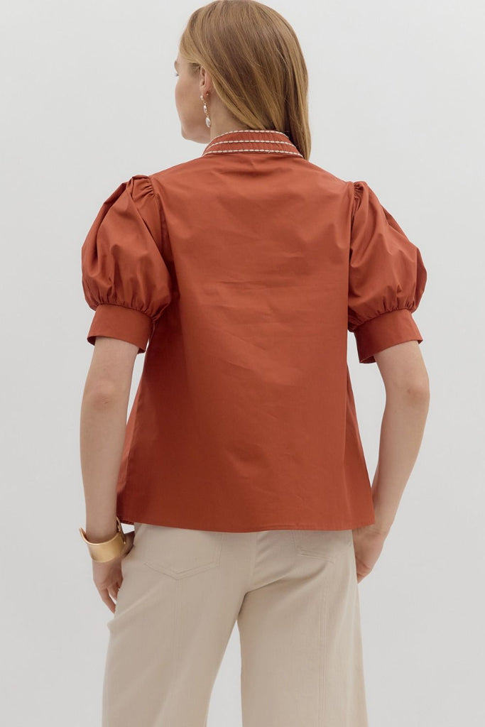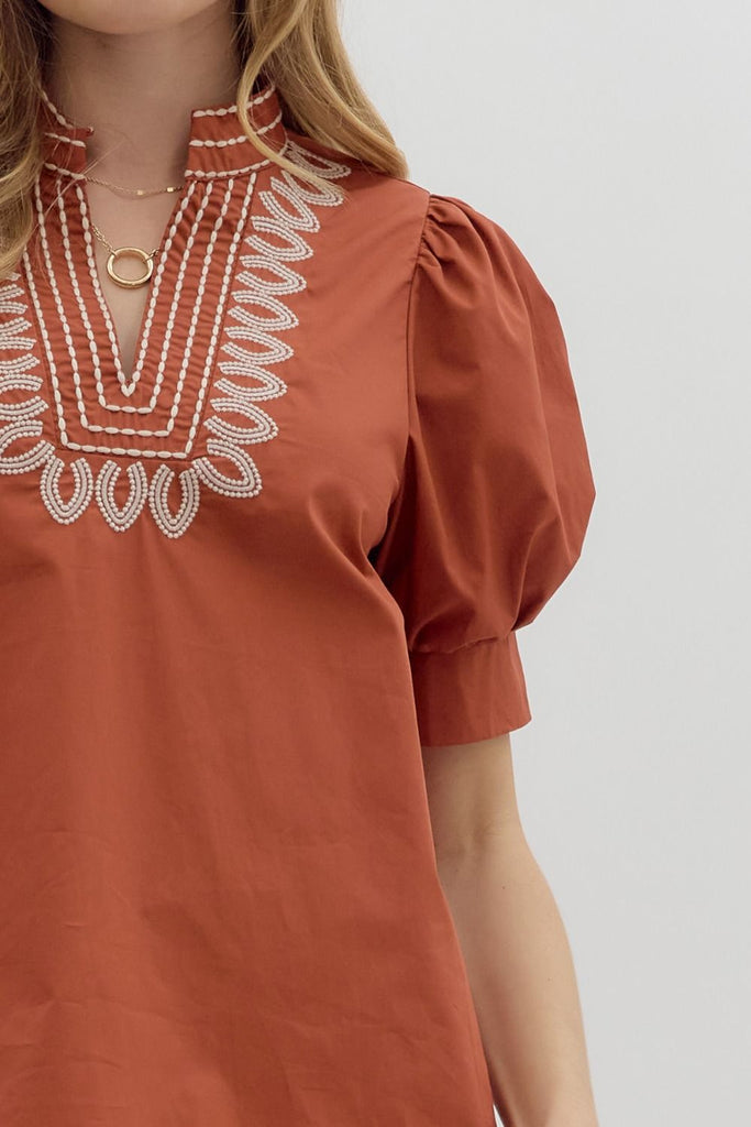 Layla Embroidery Top- Rust